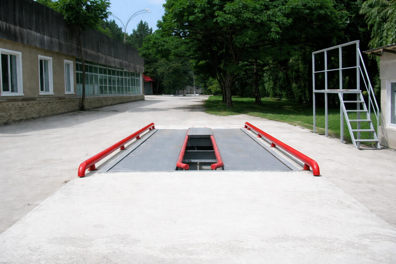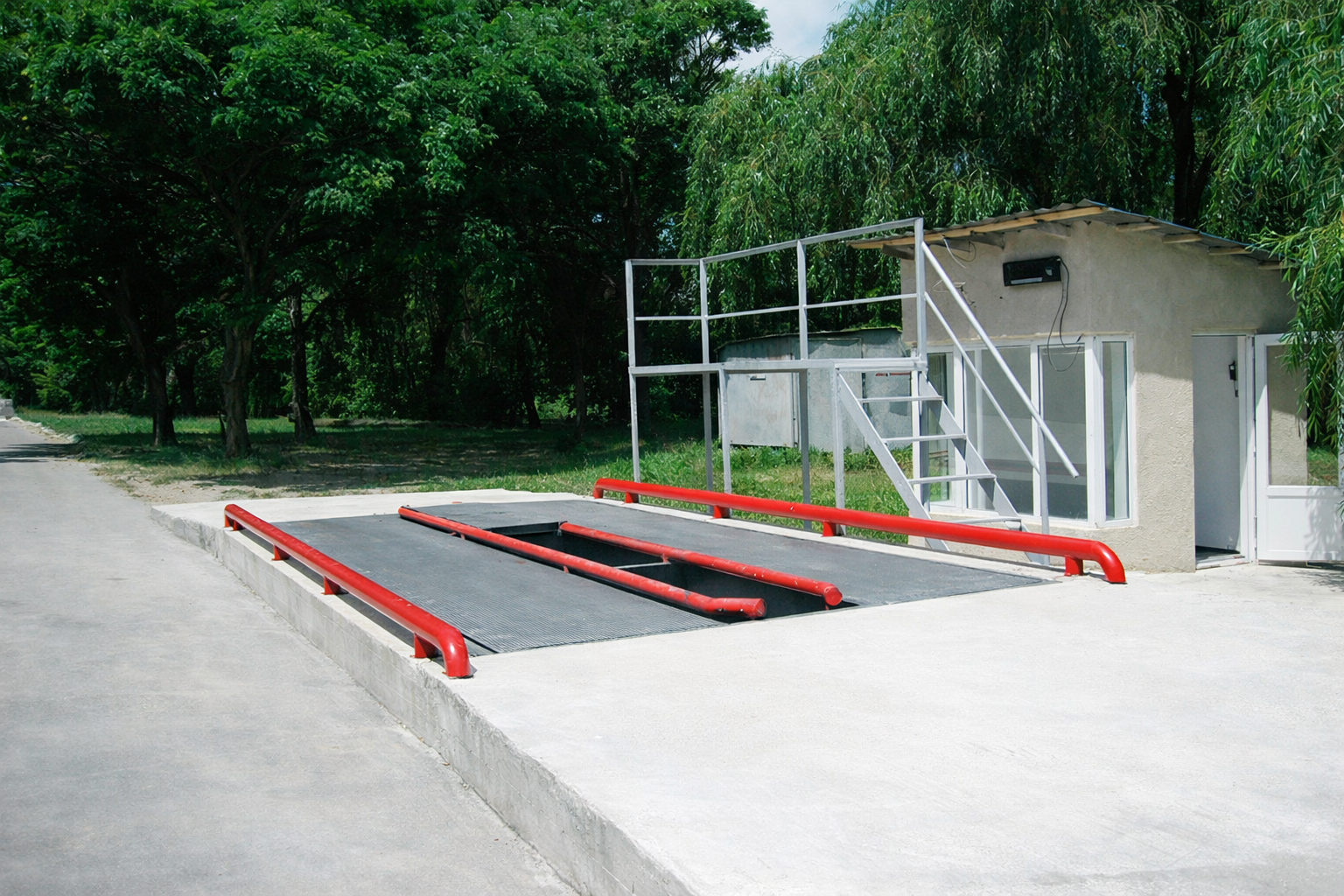 Platforma de 3 metri lățime și 6-18 metri lungime, construită din grinzi metalice cu suprafață din metal sau beton armat, include celule de cântărire, un indicator de greutate și un sistem de management al datelor.